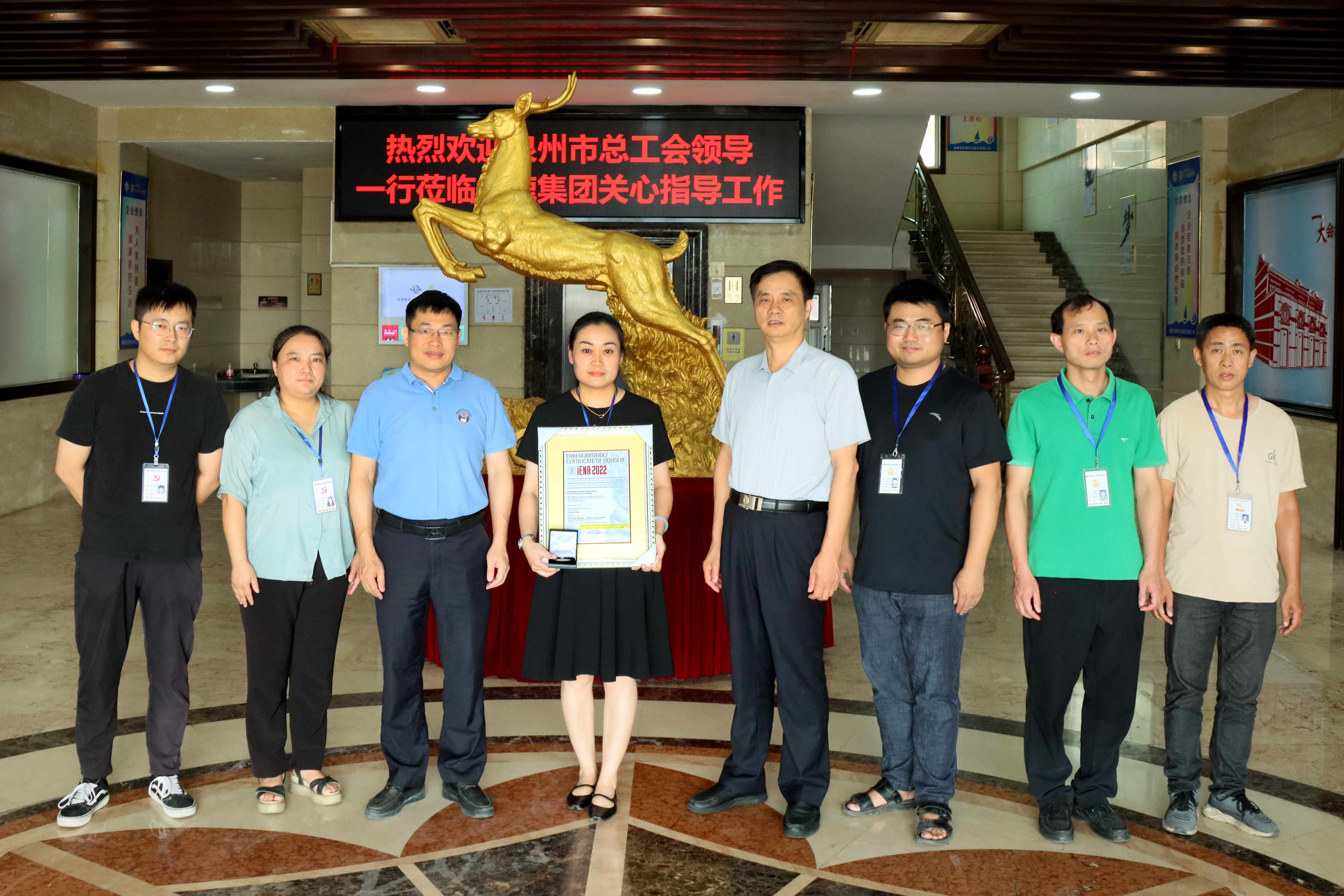 要聞丨泉州總工會領導為金鹿集團頒發(fā)德國紐倫堡國際發(fā)明展銀獎 2023年8月9日下午,泉州市總工會黨組成員、副主席陳坤生一行蒞臨金鹿集團,為金鹿集團頒發(fā)2022德國紐倫國際發(fā)明展覽會銀獎。南安市總工會黨組書記陳烏南,南安市總工會二級主任科員尤強陪同。金鹿集團副總經(jīng)理張瑜,黨總支副書記、工會主席柯美輝等人給予熱烈接待。 隨后,市總工會領導一行先后參觀了... 2023-08-10 |